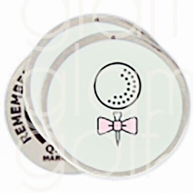 Small golf ball marker with the GlamGolf logo.It is the size of a dime:)